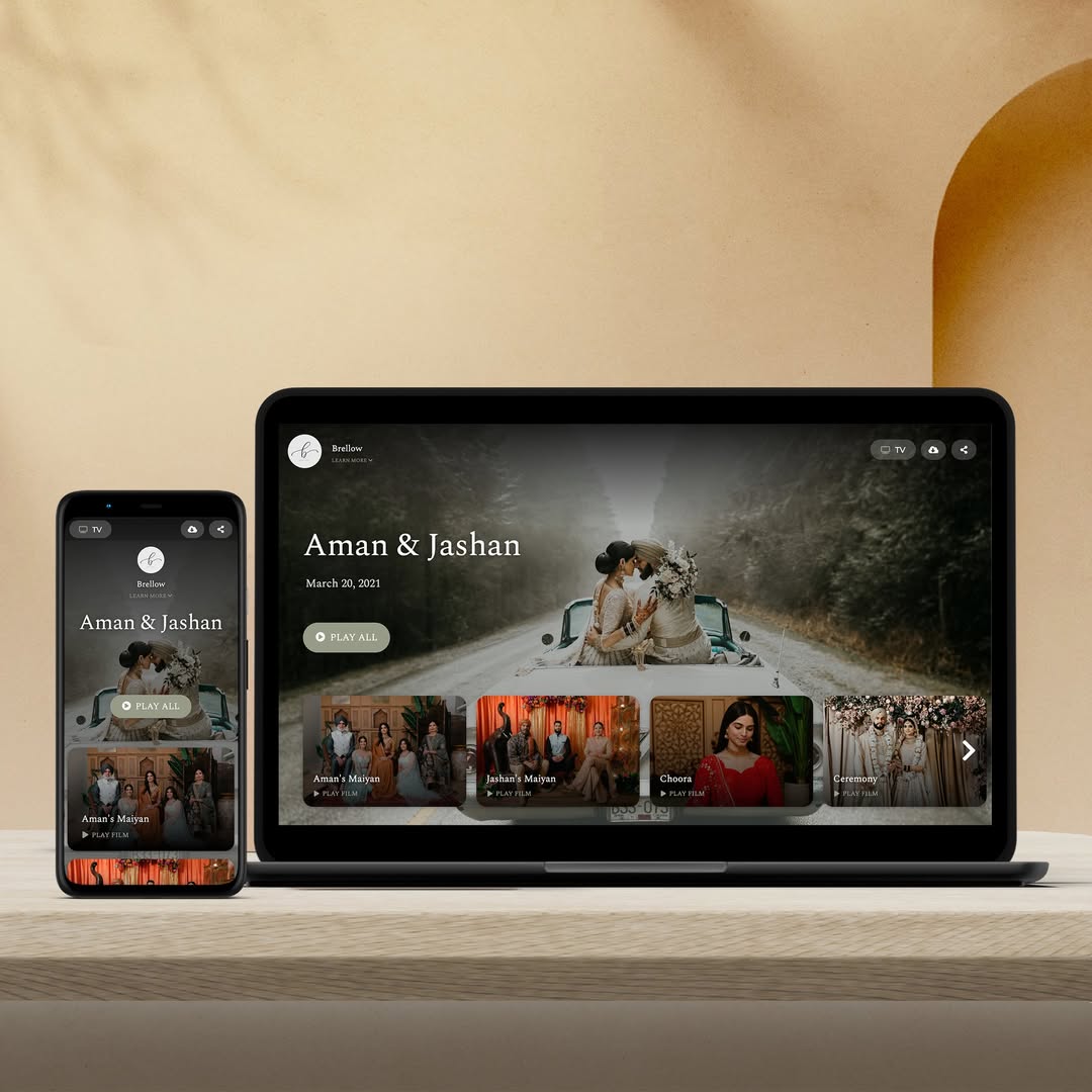 Your wedding video will be delivered through a beautifully designed private online gallery, perfectly optimised for viewing on your smart TV, tablet, or smartphone. You can stream your film in stunning quality, download it to keep forever, and easily share your favourite moments with friends and family. It’s your story, ready to be relived anytime, anywhere.